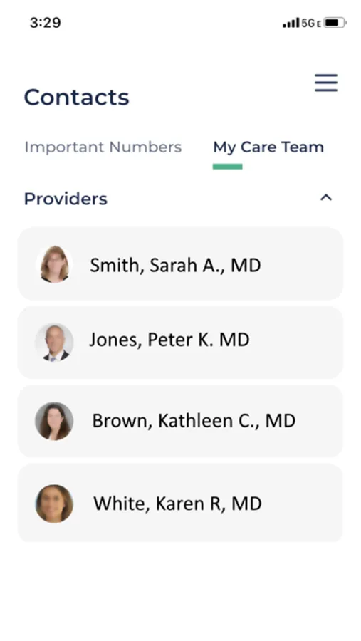 4. Easily find numbers to contact your UC San Diego Health Care Team and Clinics