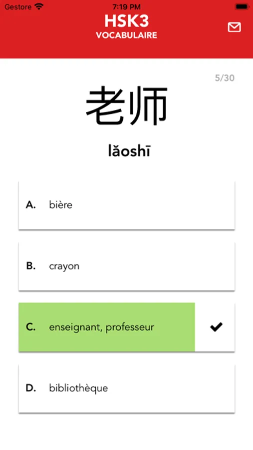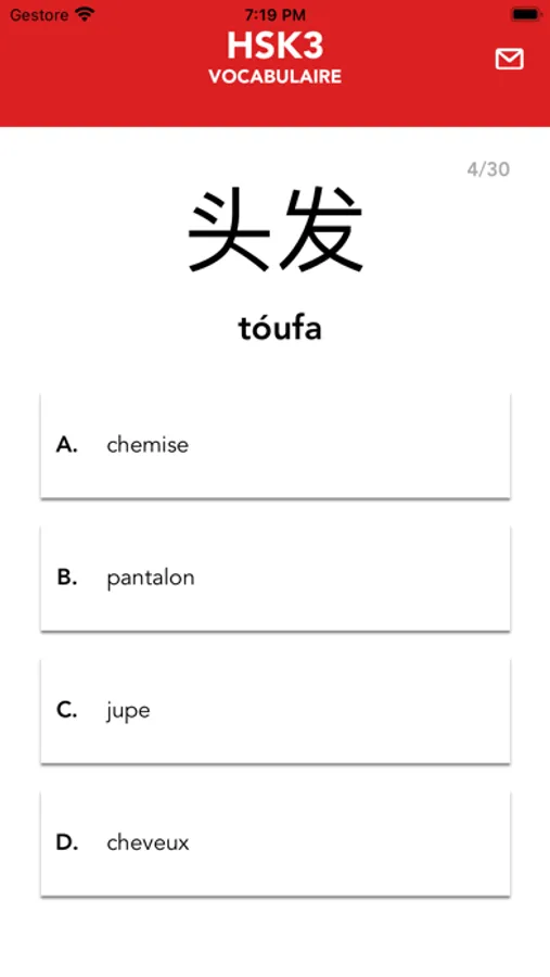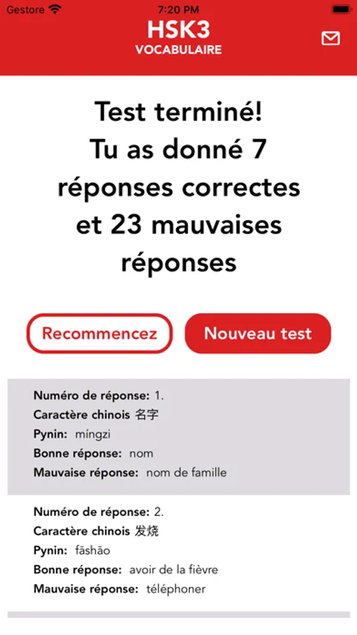 Les réponses sont multiples et en français ! Chaque question vous donne un hanzi avec une transcription relative en pinyin des 600 requis pour passer l'examen de troisième niveau.