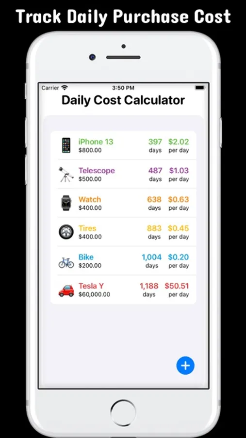 Daily Cost Calculator allows you to gain insight on how large expenses break down over time.