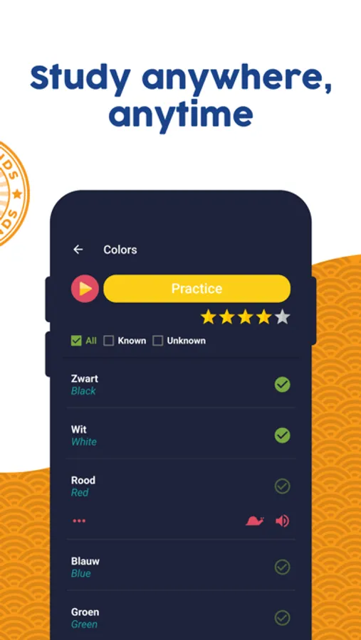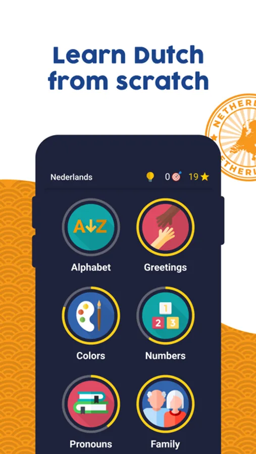 + Learn Dutch in a fun and fast way: Learn while having fun, the app is developed in the form of a game to learn Dutch quickly and easily.