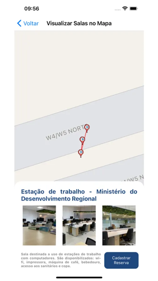 Pelo aplicativo será possível: É possível encontrar baias, mesas compartilhadas, salas de reuniões, e outros espaços, sendo muitos deles equipados com computadores e aparelhos de videoconferência.