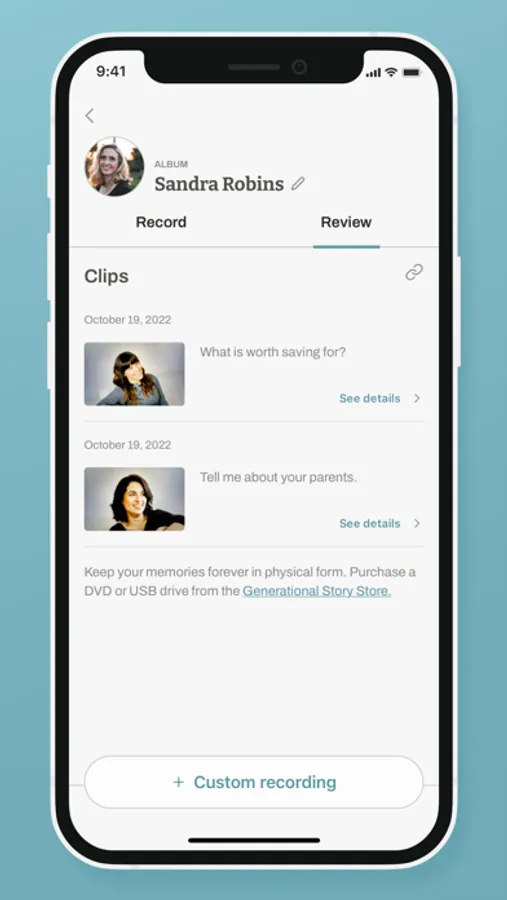 Imagine sharing your thoughts, stories and words of wisdom with loved ones instantaneously - right when they need it most. Imagine that legacy preserved on video to educate and inspire future generations. And, Imagine capturing, storing, and organizing these memories and insights in as little as 30 minutes on your own smartphone.
