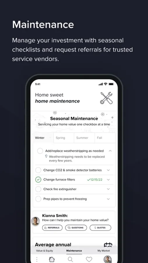 My Maintenance: Follow and complete home maintenance needs. Need a quick referral for some work for your property? Request trusted service vendors right from your agent.