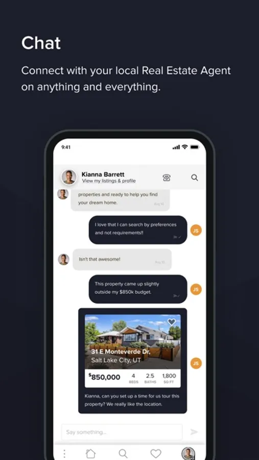 My Favorites: View saved searches and suggested homes with ease and connect with your agent for any questions.