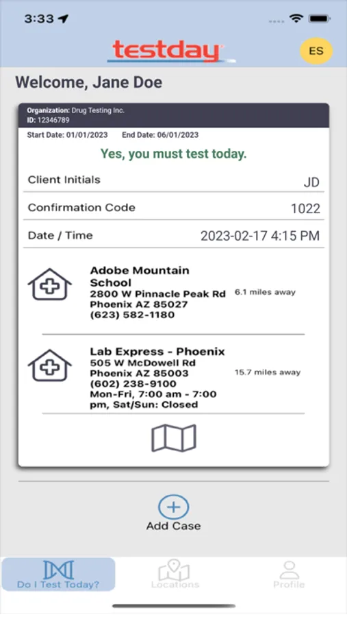 "Testday Check-in" app allows you to see if you are scheduled for a test today. Get notified well in advanced before you will need to check-in and collect.