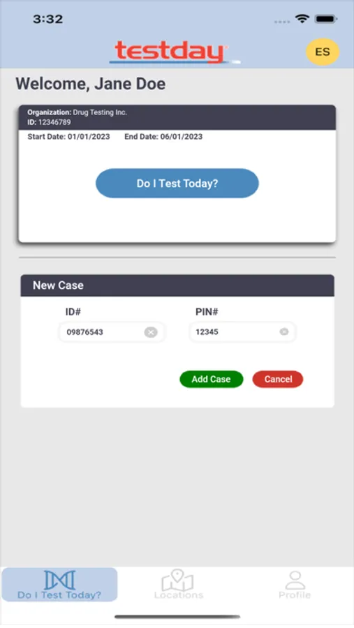 Your case which matches the ID and PIN# will be automatically shown on “Home” screen. Pressing "Add case" will prompt you ID and PIN combination while adding a new case.