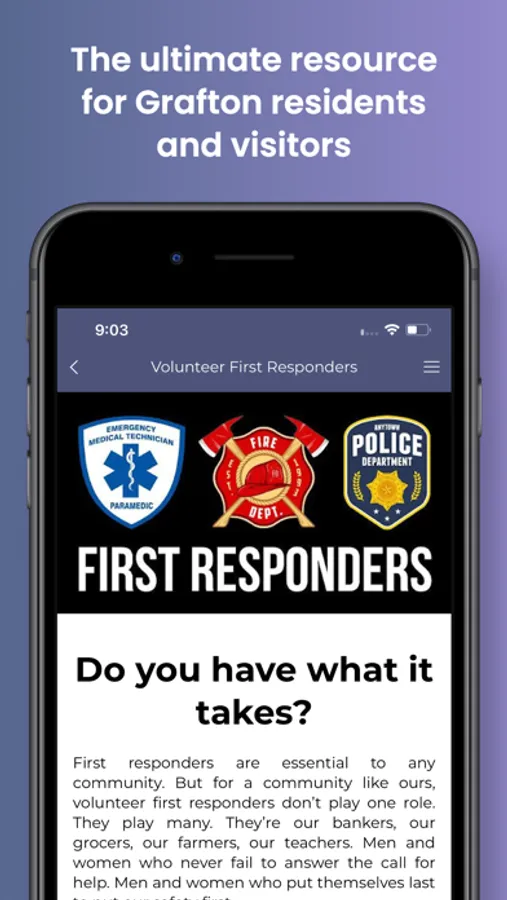 The Grafton app is an app designed for residents and visitors of Grafton, ND. The app is a community-reflective app that connects and empowers Grafton residents and visitors with critical, timely and relevant content they want to see. Content includes but not limited to articles, events, videos and resources.