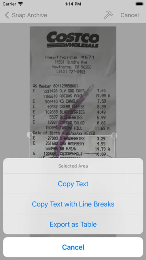 - Extract addresses, phone numbers, tabulated data like those from receipts, bills and monthly statements.