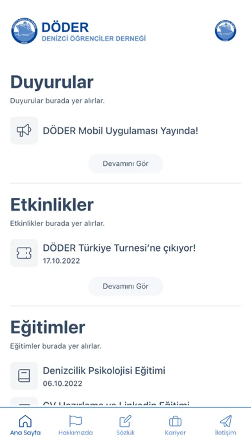 Üyelere özel duyuru, döküman ve etkinliklere erişim