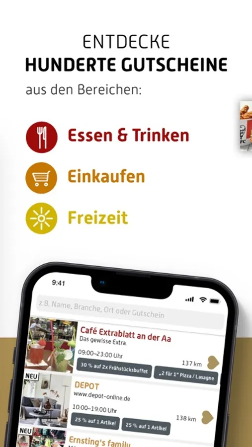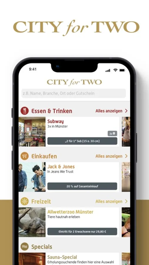 Entdecke hunderte Gutscheine aus den Bereichen Gastronomie, Freizeit und Handel.