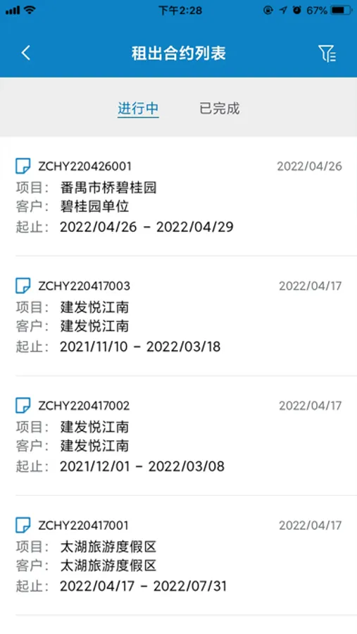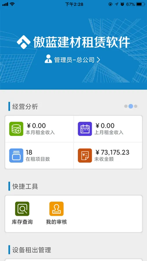 当租赁材料合约到期,用户可现场进行材料、设备的清点和回收对账,数据自动同步到PC端。