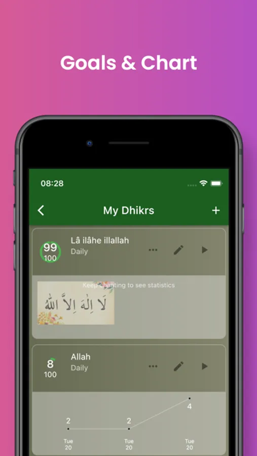 - You can visually see your dhikrs taken in the form of chart graphics.