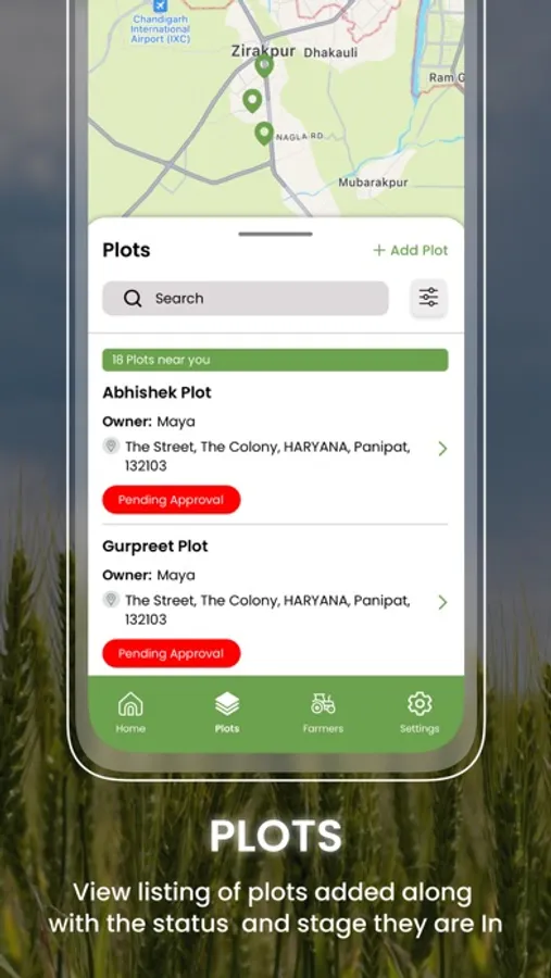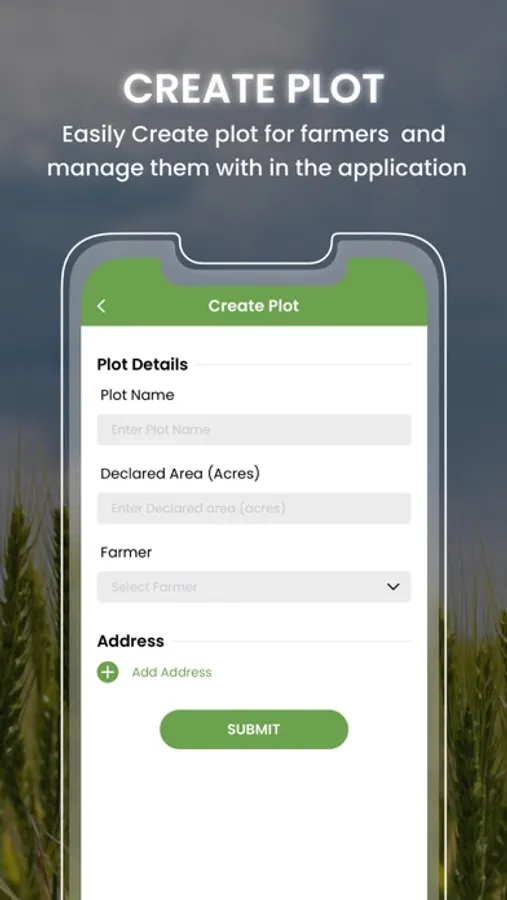 - Field representatives can perform activities in newly created plots, enter inputs for chemicals and fertilizer, and raise alerts for how much crop is damaged in the plot.