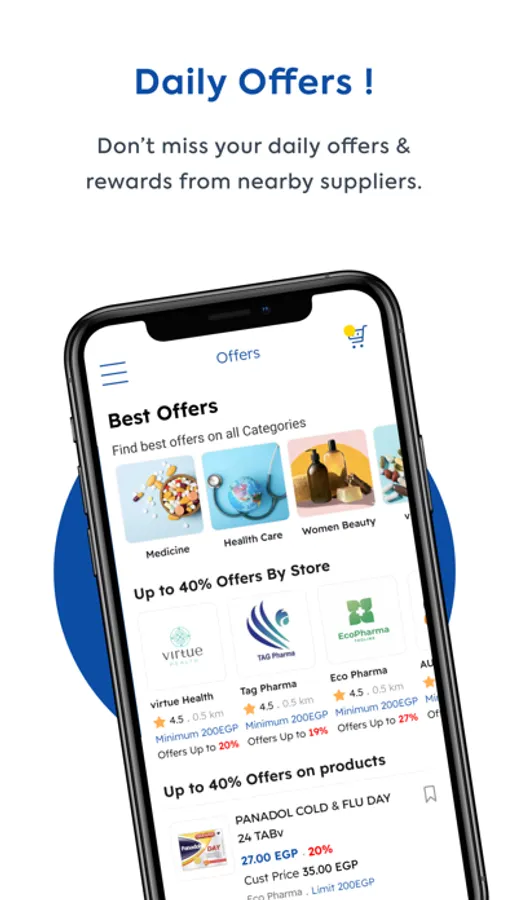 The app allows pharmacy staff to order needed items, cosmetics, and supplies from stores with the highest discount rate.