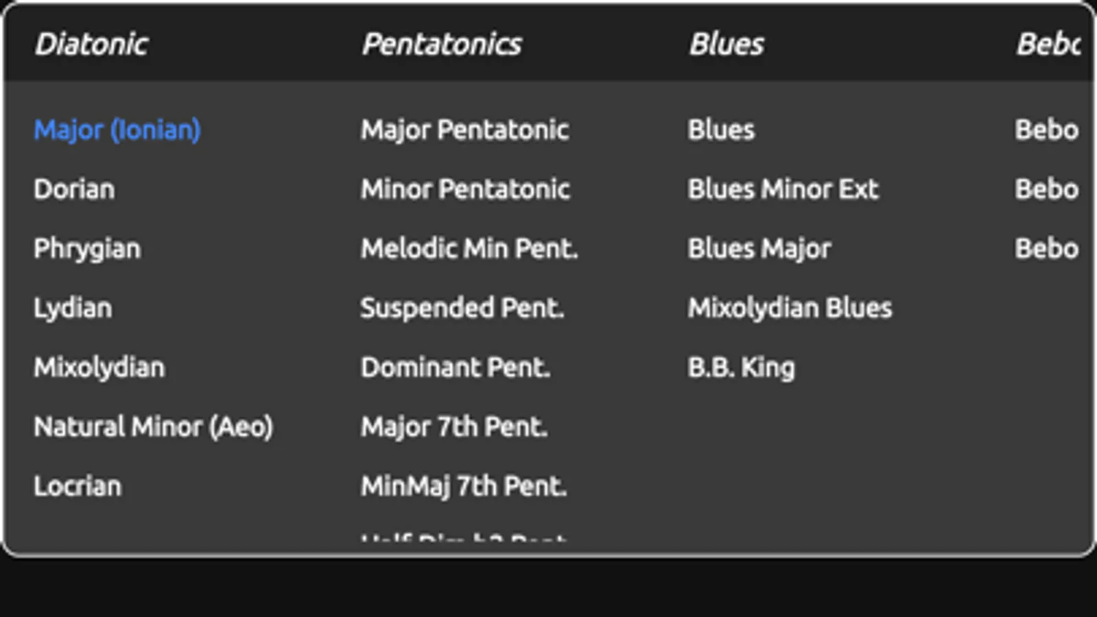 I've created this app as a scales reference for myself while learning to play the guitar, I hope you find it useful too :)