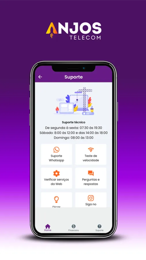 O aplicativo completo com suporte rápido na palma da mão. Ao alcance de 1 clique.