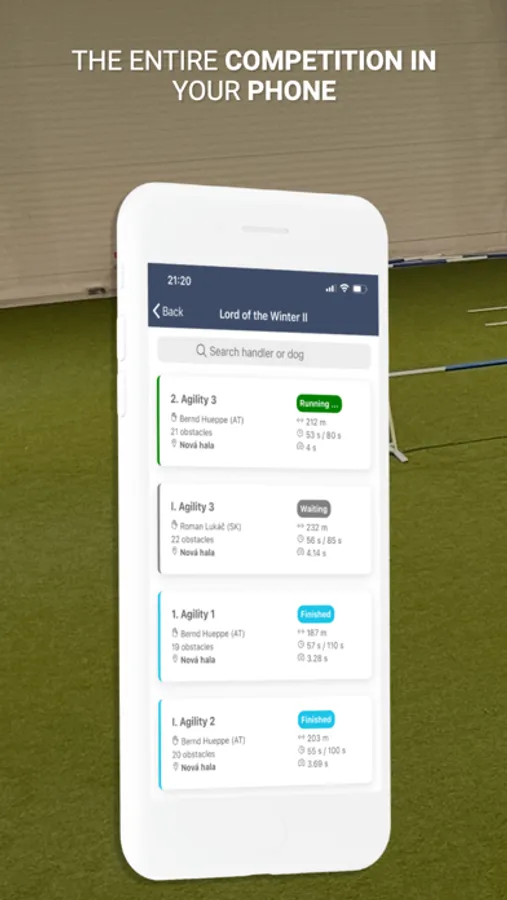 If the competition organizer uses Agility Manager, through this application, competitors can monitor the current status of ongoing runs as well as the results of already completed runs in real time.