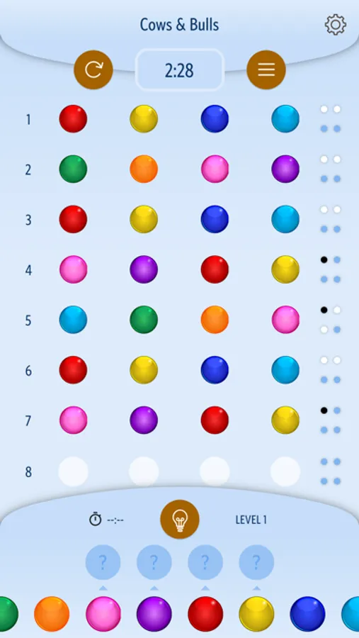 Test your ability to crack codes with Cocolor Mastermind (Cows & Bulls), a challenging game of deduction and logic that will help you exercise your brain while keeping your mind young and engaged.