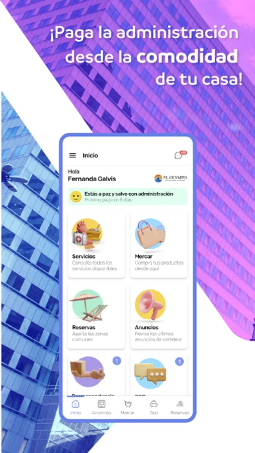 ¡Es simple! Puedes chatear directamente con el administrador para resolver dudas y solicitudes rápidamente, recibir notificaciones en tiempo real de correspondencia, y reservar zonas comunes para eventos familiares. ¡y eso no es todo! Mantente informado con anuncios y noticias relevantes sobre tu copropiedad.