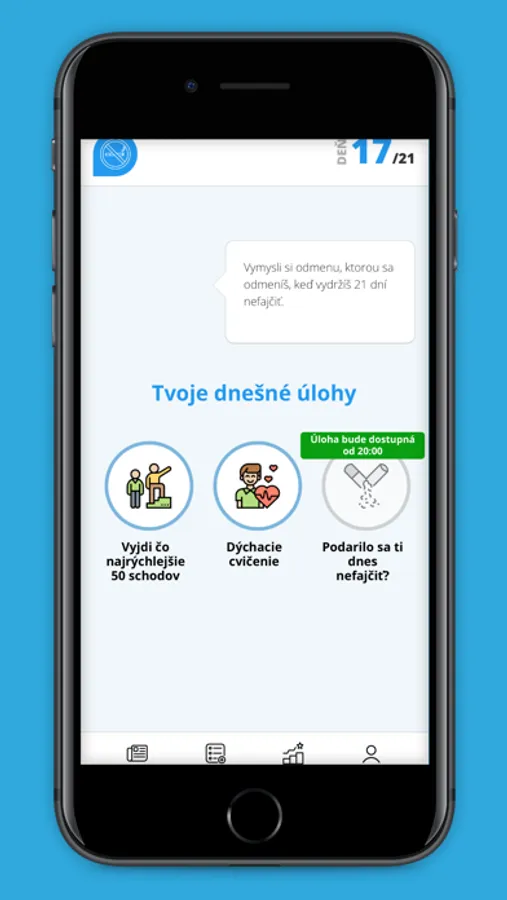 Cieľom aplikácie SmokeFree je podpora a pomoc pri najťažších prvých 21 dňoch odvykania.