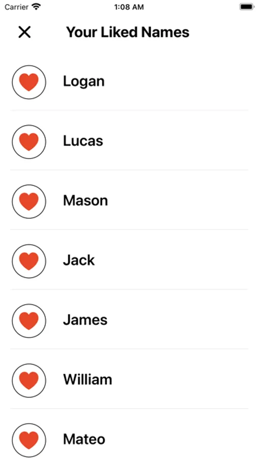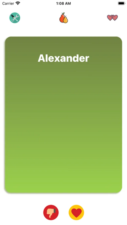 Using swipe gestures you can swipe right to like a name, or left to dislike it.