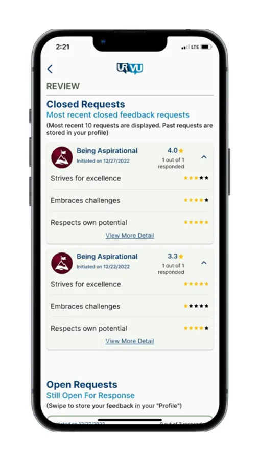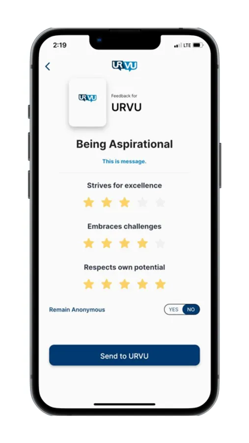 Getting practical feedback in real-time about personal performance is a powerful way to grow professionally, and personally. The URVU app enables this in a constructive way, anonymously if desired, and tracks improvement over time. It enables selection from 32 topics that cover virtually all areas of professional interactions, and for each topic provides feedback against 3 straightforward criteria.