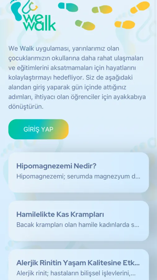 Hekimlere özel olarak yapılmış günlük olarak atılan adımları bağışa dönüştürmeleri için geliştirilmiş bir akıllı telefon uygulamasıdır.