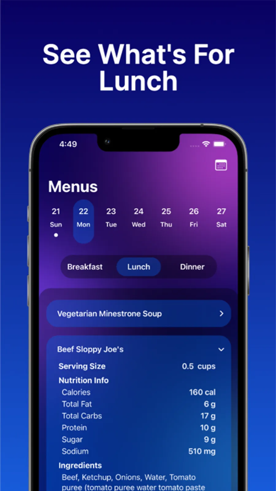 - Viewing daily meal menus