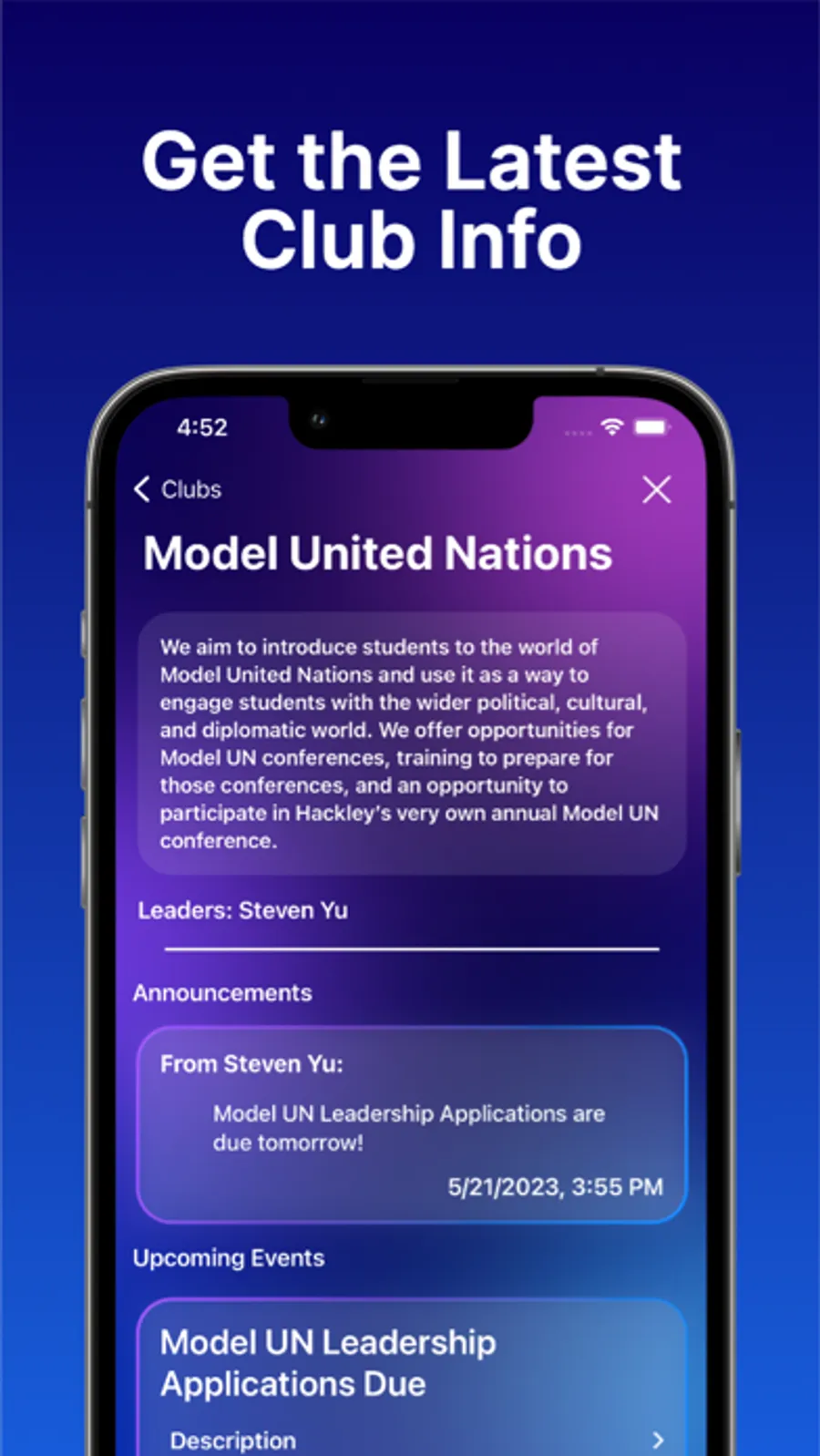 - Viewing, managing, & joining clubs and organizations