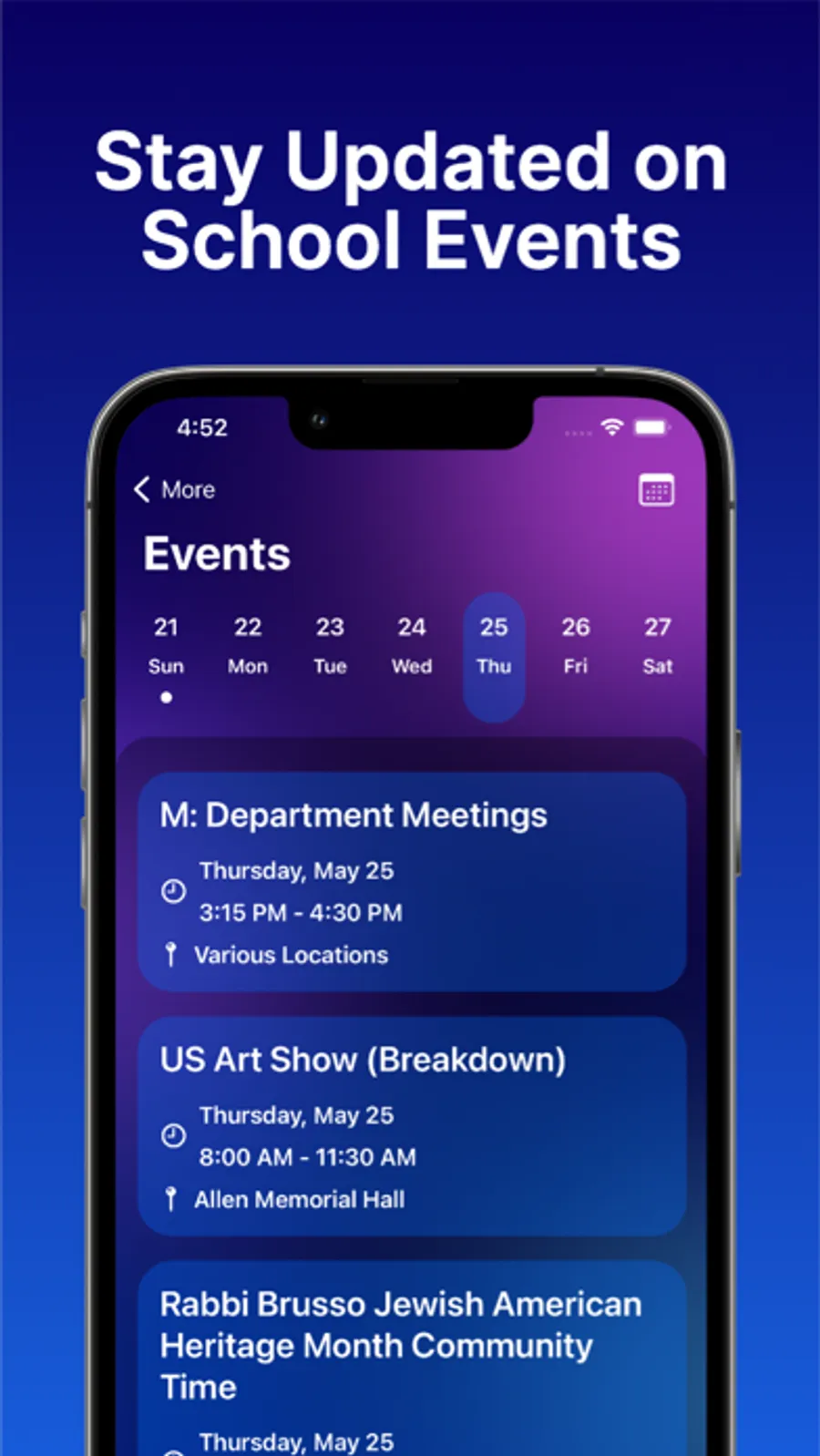 - Viewing school-wide sports and events