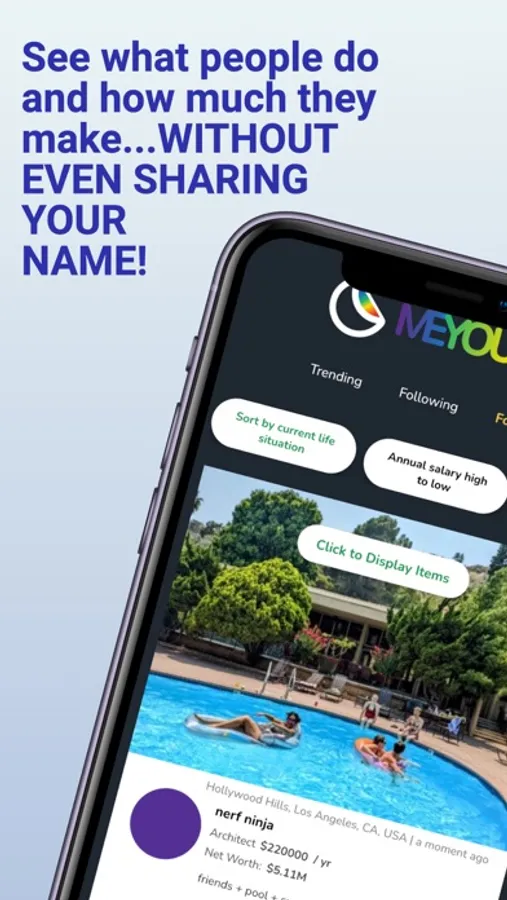 This is a brand new way to discover and connect with people who are in your exact same life situation* (job title, income, location) or someone who lives an entirely different life!