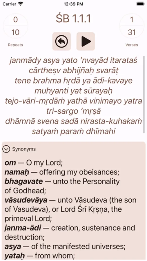 This app uses an ancient approach to memorizing Sanskrit verses (shlokas) from the Vedic scriptures: Srimad-Bhagavatam, Bhagavad-Gita, and others.