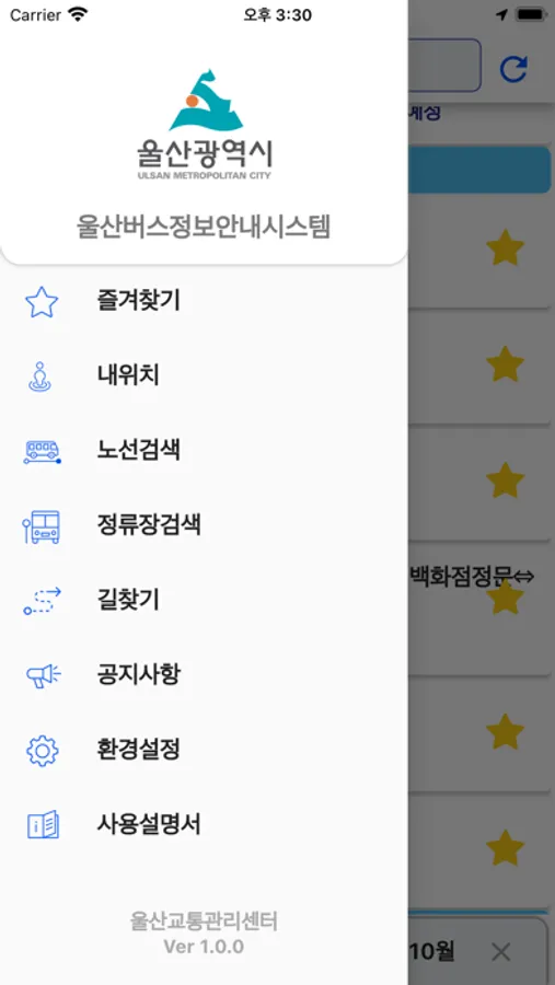 1. 즐겨찾기 : 자주 이용하는 버스 노선과 정류장을 등록하면, 간편하게 실시간 버스도착정보가 제공됩니다.