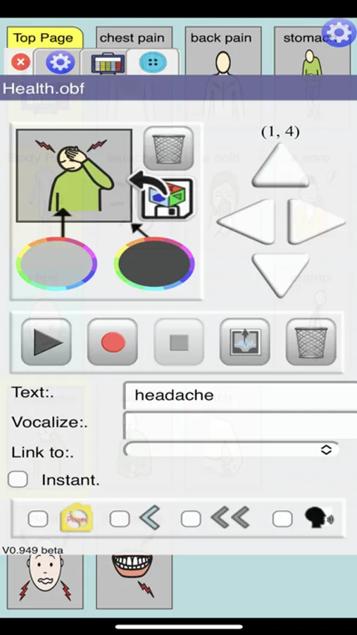4. Edit buttons on existing and new boards, changing background colors, import different symbols, images or photos, change the labels and change the text that is spoken. Add recorded audio to buttons also, using the record feature or import audio.