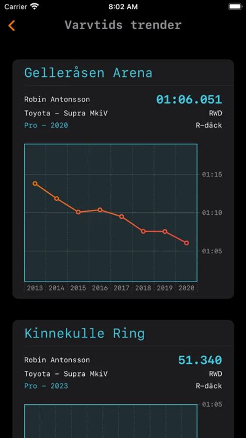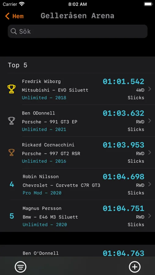 - Historiska snabbaste TimeattackNU.se tider, snabbaste tid per ekipage visas givet aktiva filter