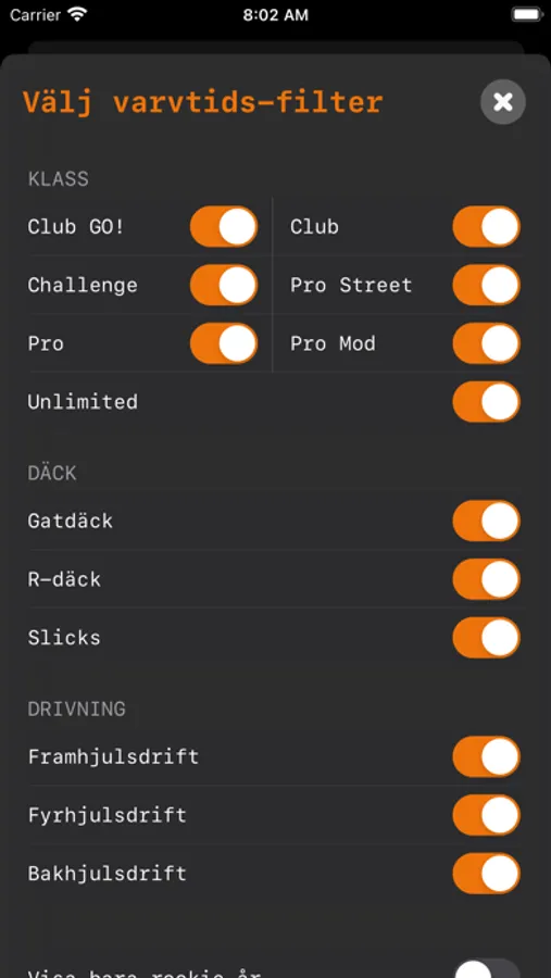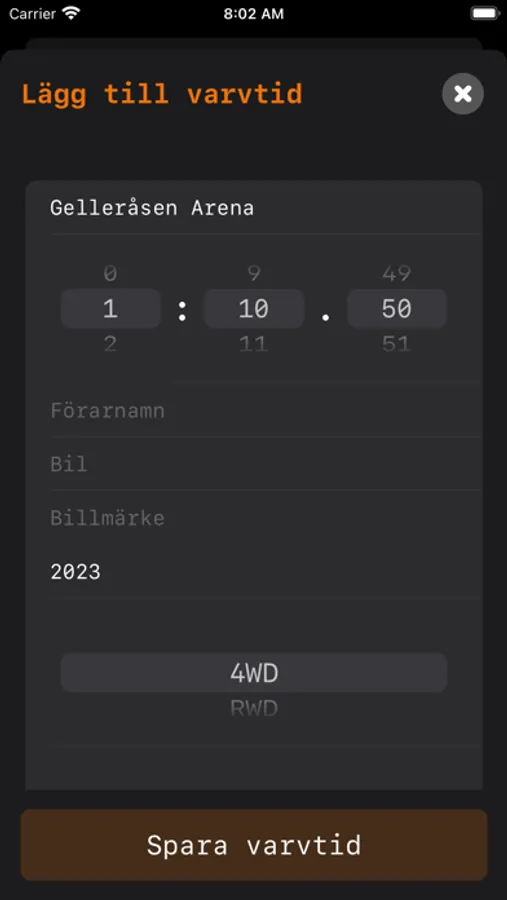 - Se tidsdelta inofficiell tid mot officiell tid (swipe:a höger på inofficiell tid)
