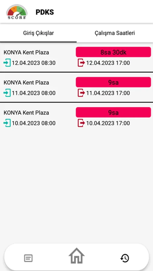 Bu uygulama çalışanların işyerlerine giriş ve çıkış zamanlarını takip etmek için kullanılır. Çalışanlar bu uygulama ile işyerine giriş ve çıkışlarda işlem yaparak çalışma zamanlarını işverene bildirmiş olurlar. Bu uygulamayı kullananlardan herhangi bir ücret talep edilmez. Sisteme giriş için öncelikle işveren tarafından çalışanlara verilen firma kodu girilir daha sonra kullanıcı adı ve şifre girilir. Kullanıcılar bu uygulama ile çalışma saatlerini, Hangi gün kaç saat çalıştıklarını görebilirler. Yetkili kişilere mesaj gönderebilir, izinlerini ve giriş çıkışlarını takip edebilirler.