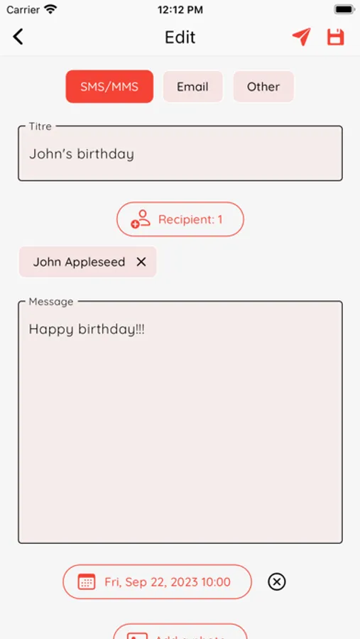 You will be able to write and plan your message, whether it is an SMS, an MMS with photos, an email, or any other message.
