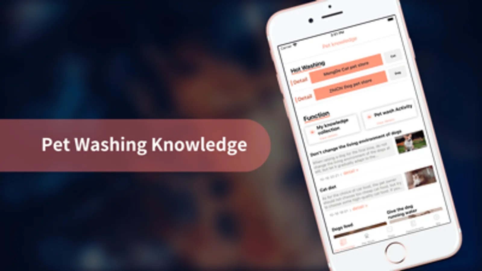 This is a pet washing app. It is mainly used for dogs and cats. Of course, there is also pet knowledge. If you need it, please use our app.