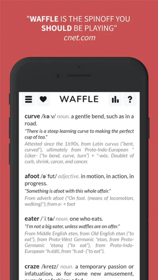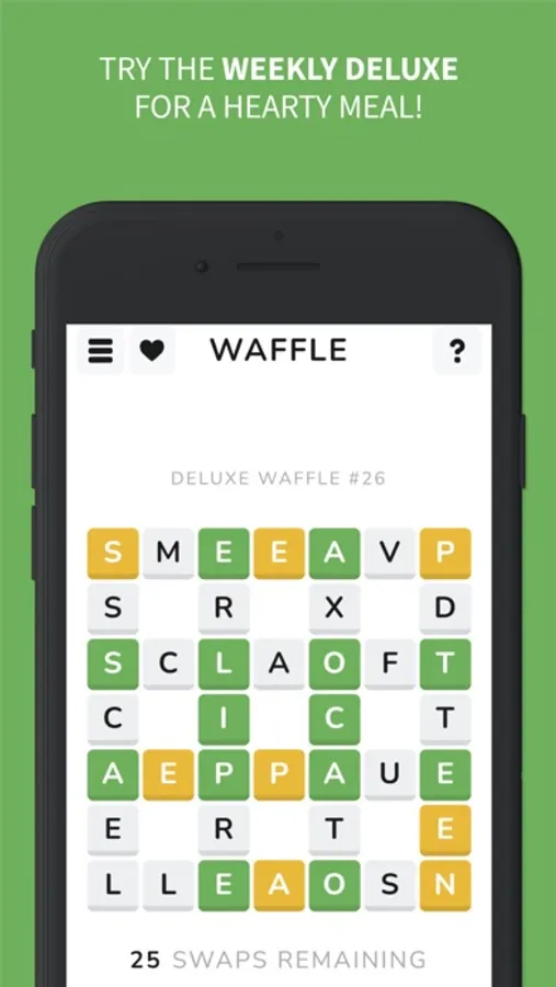 Waffle is a delicious daily word game of letters and logic. Rearrange the letters into the correct words. You will earn stars for every puzzle solved. Learn the definitions of all words featured in the game.