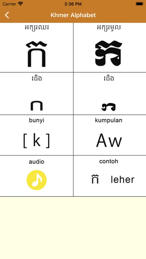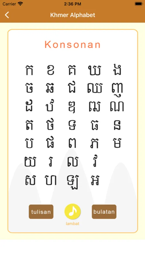 Aplikasi ini adalah untuk pemula belajar bahasa Khmer dalam bahasa Melayu.