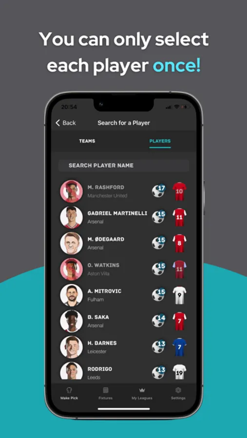 Select a different player from top-tier football leagues each week to earn you points based on their real-life performances. Choose wisely, as you can select each player only once per season. Every goal they score earns you points!