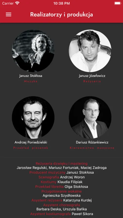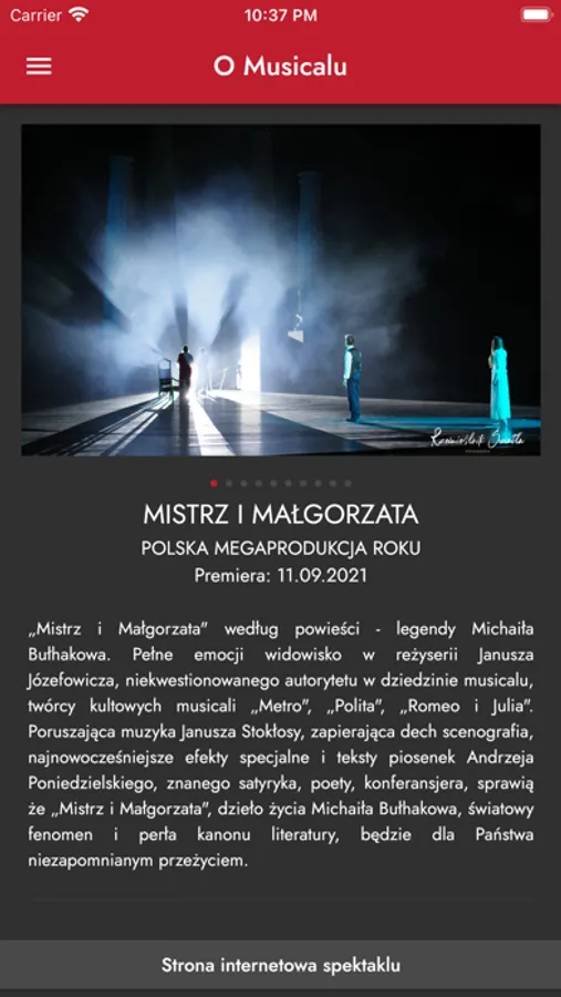 - dostęp do kompleksowych informacji na temat twórców, aktorów oraz historii spektaklu,