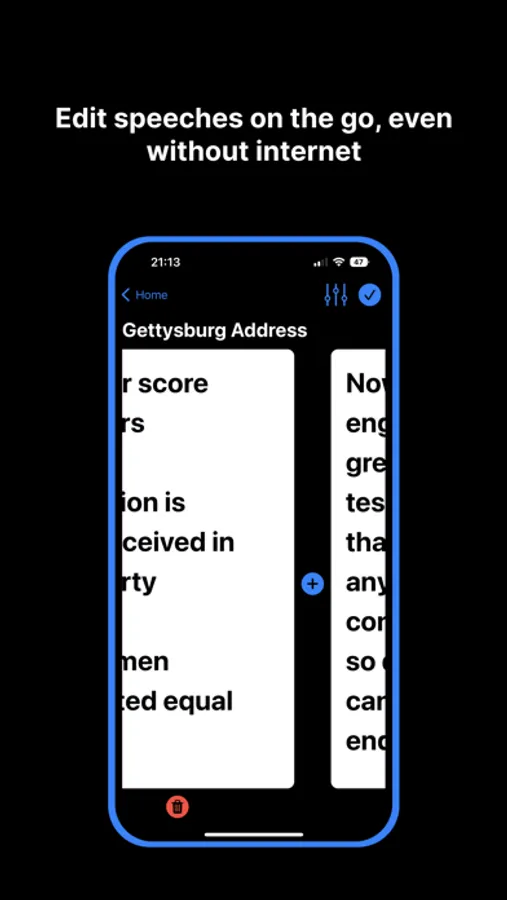 Edit your speeches offline and they will automatically sync across all your devices once you come online.