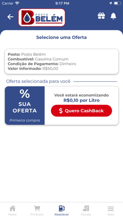 Criado pra você ter economia, praticidade e segurança. Conheça as melhores ofertas, informe quanto vai abastecer e veja quais as opções de descontos temos pra você.