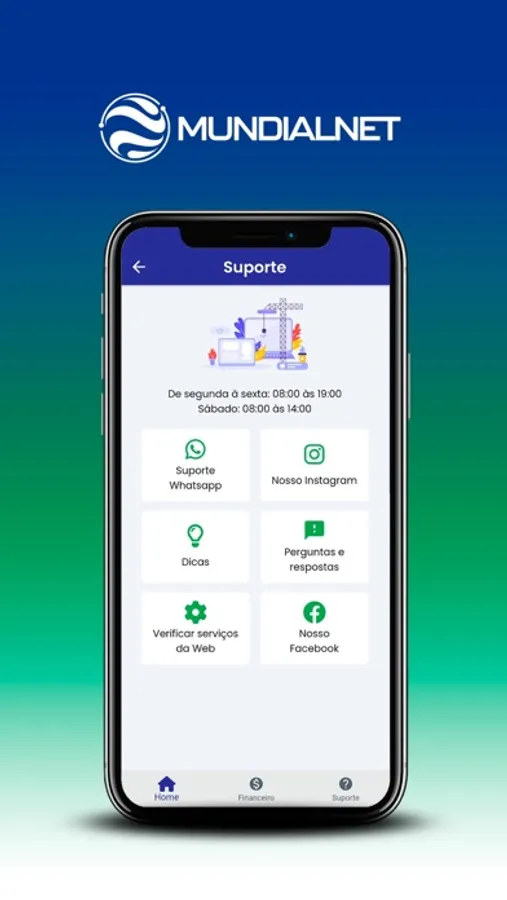 O aplicativo completo com suporte rápido na palma da mão. Ao alcance de 1 clique.
