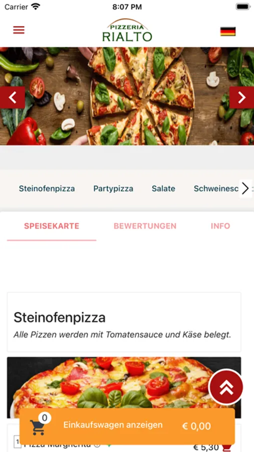 This app is app for "Rialto Pizzeria" restaurant in Germany.
