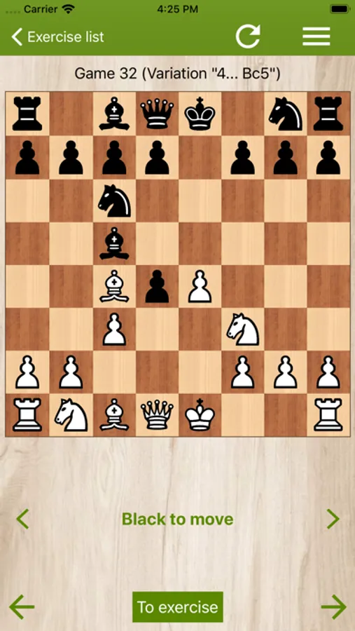 The exercises are divided into 3 parts according to the variations of the Scottish Gambit.