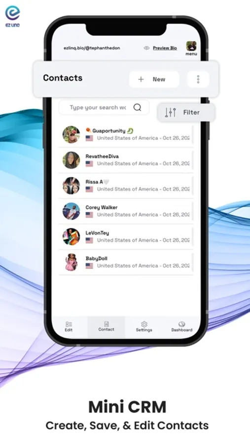 When EZLINQ is tapped it will bring your new-found friend to your customizable page showing all of your social media and contact information at once. It's like carrying a stack of business cards at all times, but way cooler.