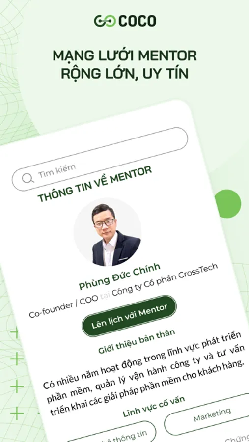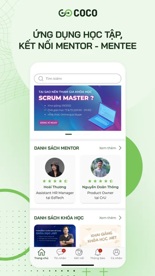 COCO - Cộng đồng học tập, kết nối Mentee-Mentor là ứng dụng giúp bạn có thể tìm kiếm cho mình những mentor uy tín, chất lượng về từng lĩnh vực giúp bạn có thêm định hướng về tương lai. Đồng thời ứng dụng cũng sẽ là nơi để bạn có thể chia sẻ đến những mentee, những bạn đang gặp phải khó khăn trong việc định hướng cuộc sống. Ngoài ra, ứng dụng còn mang đến cho bạn hàng trăm khóa học chất lượng đến từ các nền tảng giáo dụng uy tín trên toàn thế giới.